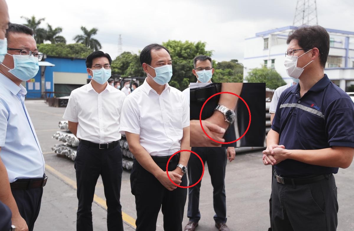 于是法讯君搜索发现东莞市市长吕成蹊的多篇新闻报道里的图片,有不少其戴手表的图片。