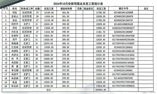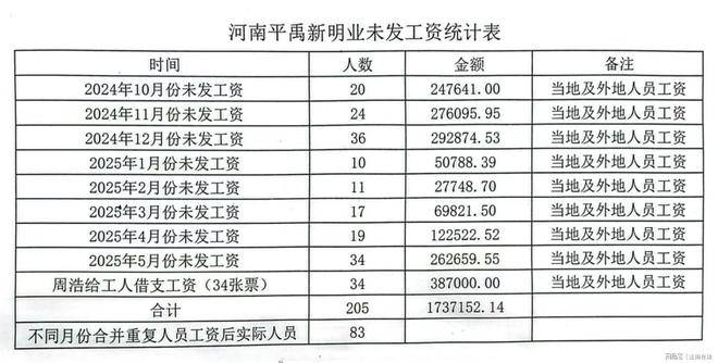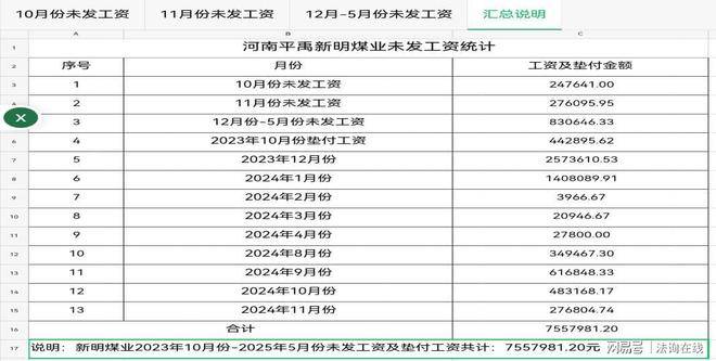 谭治国提供的平禹新明煤业2024年-2025年5月未发工资统计表