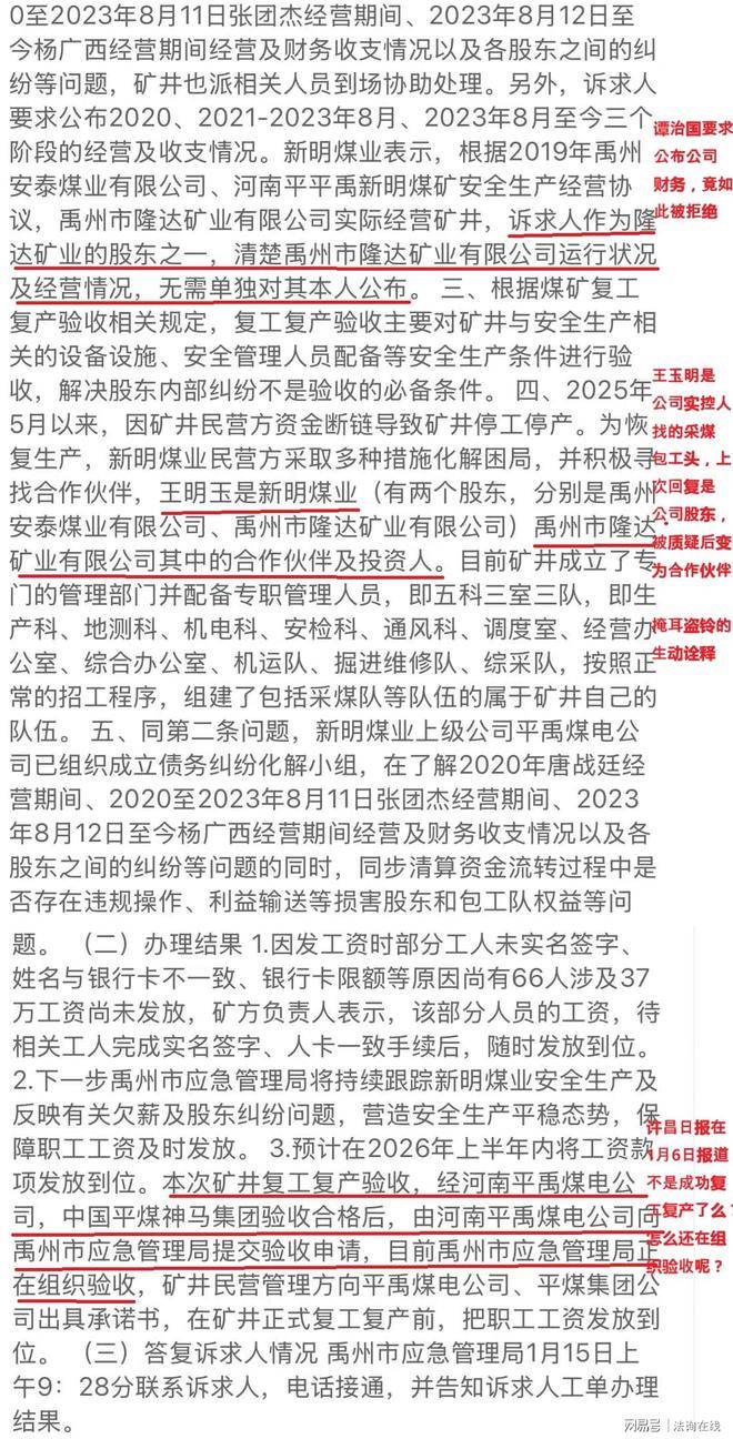 看看1月6日的《许昌日报》第二版“要闻”的公告吧,里面的公告显示拖欠的工人工资1173万元在2025年11月30日已全额发放。如果是这样,为什么那么多工人还多次到河南省信访局讨要工资呢?如此不负责任的公告,许昌日报审核了吗?再者,对于该版报道的《河南平禹新明煤业有限公司顺利通过复工复产验收 吹响2026年安全高效发展冲锋号》,谭治国表示是虚假新闻,将在春节后向河南省委宣传部举报。