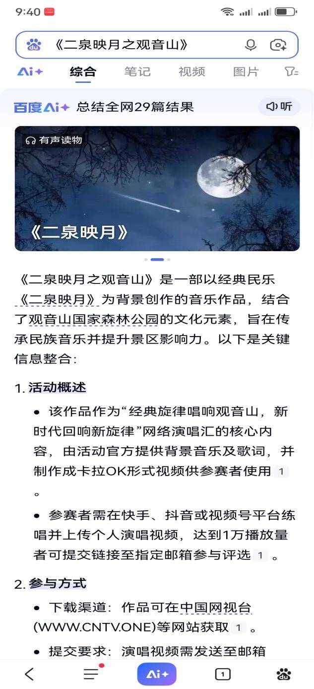 《二泉映月之观音山》是一首以东莞观音山国家森林公园为背景创作的网络演唱汇主题曲,结合《二泉映月》经典旋律与观音山生态议题,通过音乐形式反映当地发展中的矛盾与诉求。