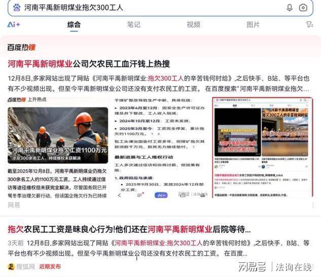 平禹新明煤业拖欠农民工工资在网上闹得沸沸扬扬,公司承诺的在2025年底之前发放也没有兑现。
