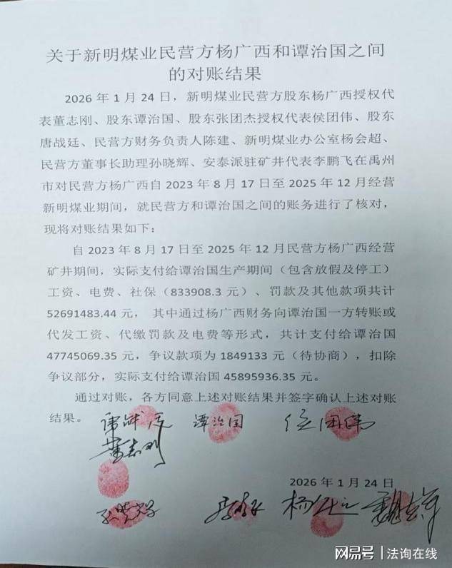 平禹新明煤业公司在1月24日的对账单显示,煤矿经营矿井仅支付了4589多万元,还下欠约700万元。既然民营方资金充足,为何不予以支付呢?